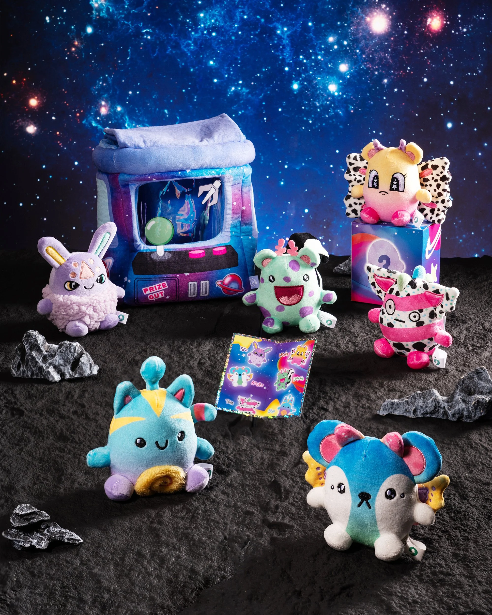This cute crew of aliens has crash-landed from the cosmos into your collection. Don’t worry, they come in peace in their own custom claw-machine plush box.